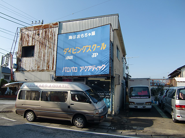 明鐘は、久里浜〜金谷フェリーの千葉県側の港「浜金谷」のちょっと南に位置する明鐘岬のこと。パロパロアクアティックさんは、そのまたちょっと南、房総西線「保田」駅の真ん前徒歩2〜3分、127号線の交差点にありました。