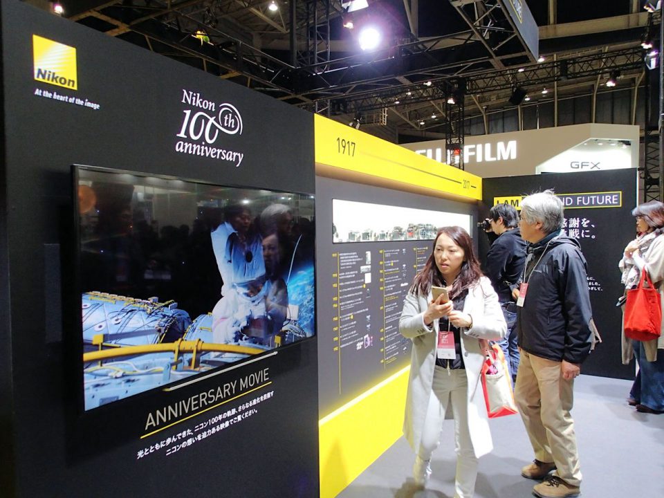 ニコンは100周年を説明するボードを出していましたが、なんとなく控えめに感じてしまいました。