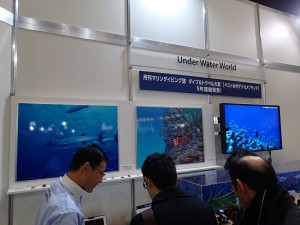 これまで、CP+では水中写真関連は素っ気ない展示でしたが、今年は清水淳氏撮影の映像と共に機材も展示しておりました。マリンダイビングフェアの宣伝パンフも置いてあり、「プレ・マリンダイビングフェア」といった感じでした。